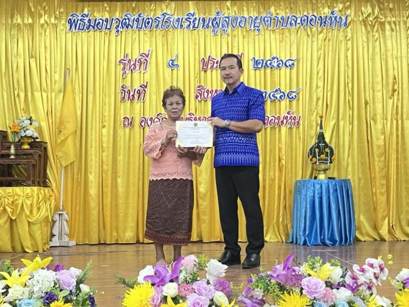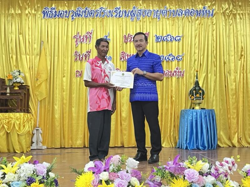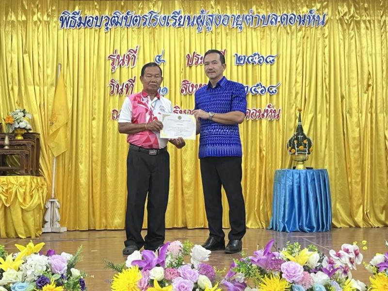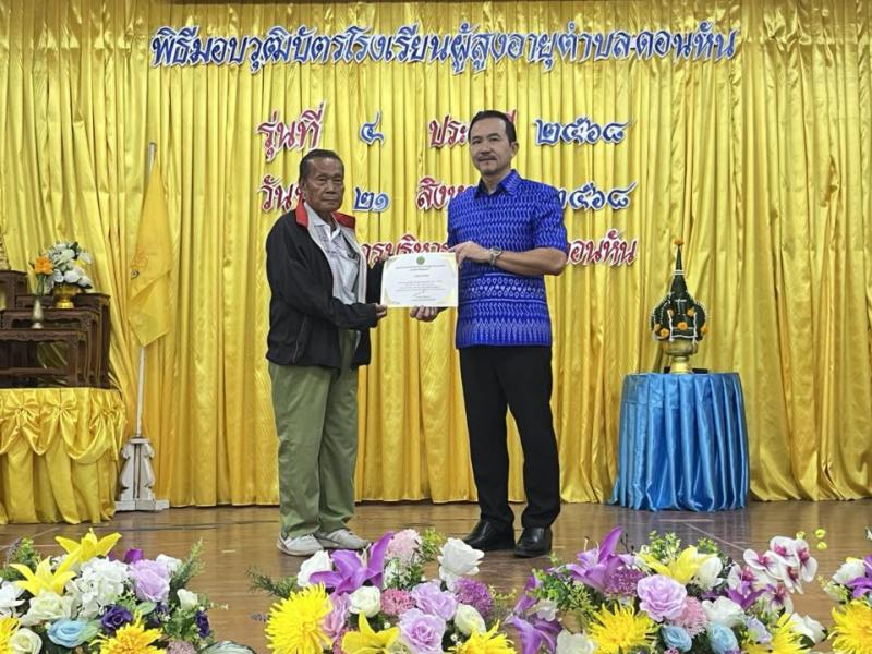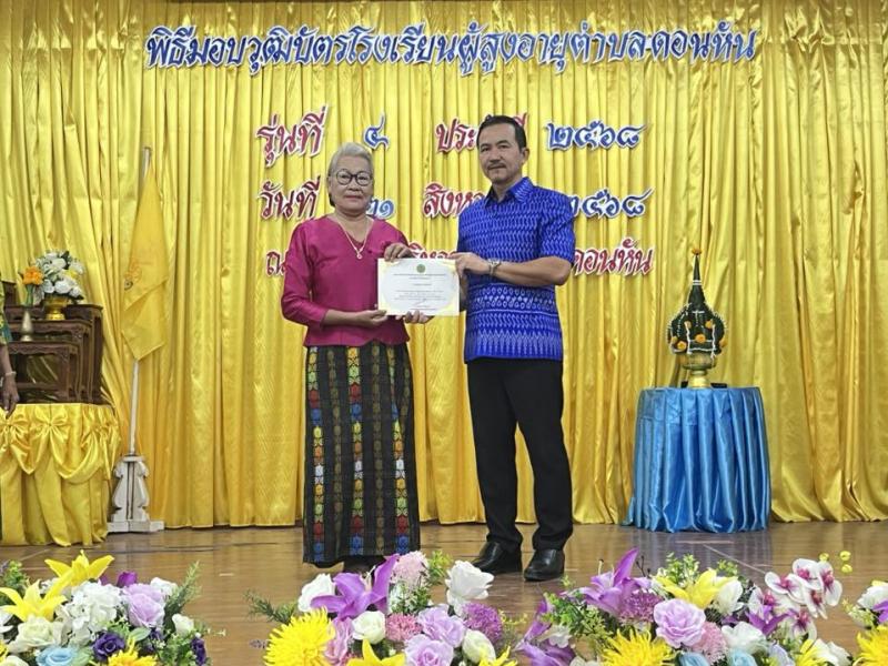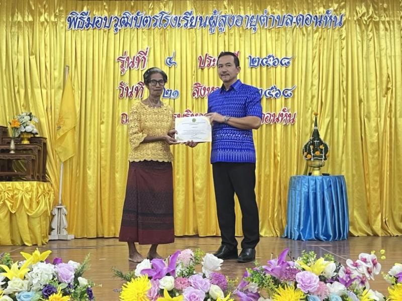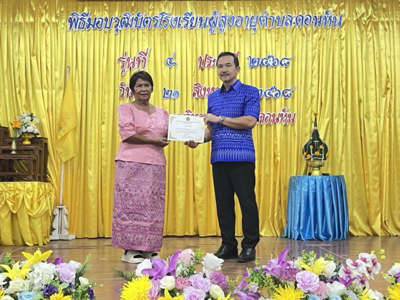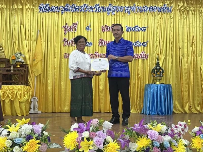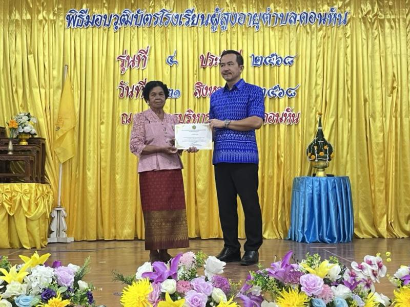 วันพฤหัสบดี ที่ 21 สิงหาคม 2568 กิจกรรมปัจฉิมนิเทศและมอบวุฒิบัตรนักเรียนโรงเรียนผู้สูงอายุ รุ่นที่ 4 ประจำปี พ.ศ.2568 ณ องค์การบริหารส่วนตำบลดอนหัน