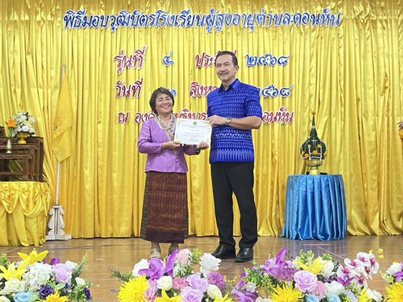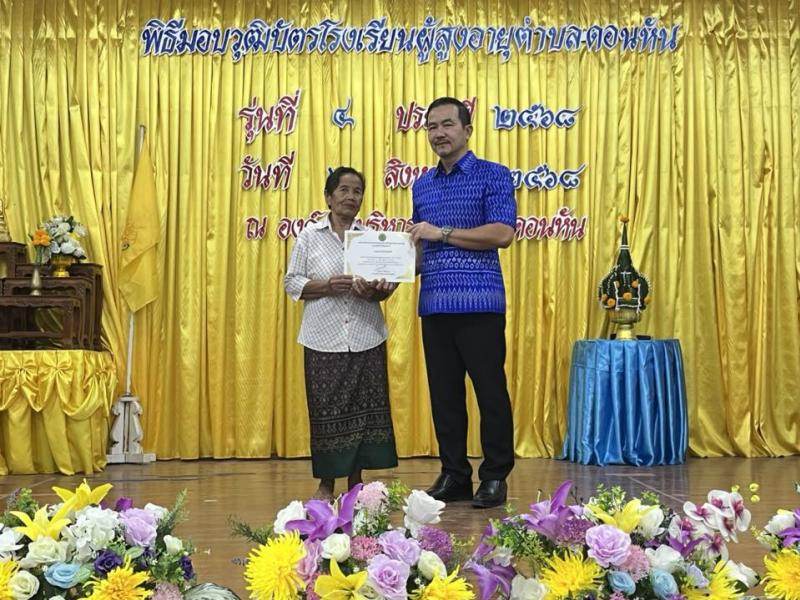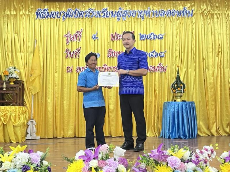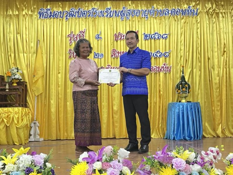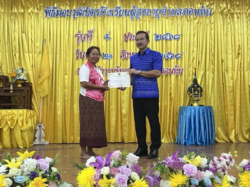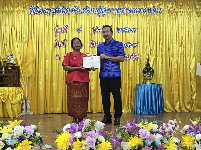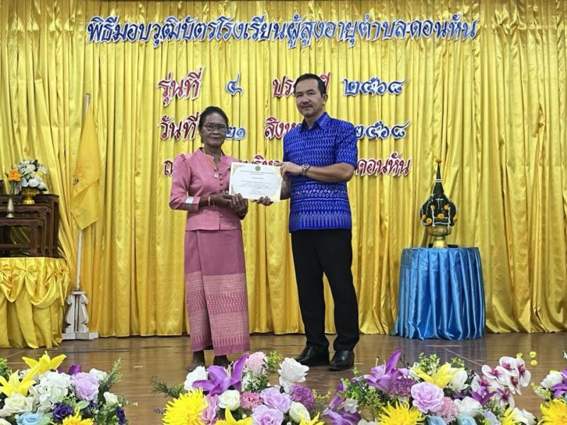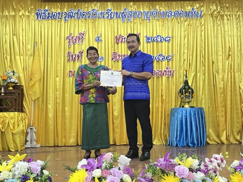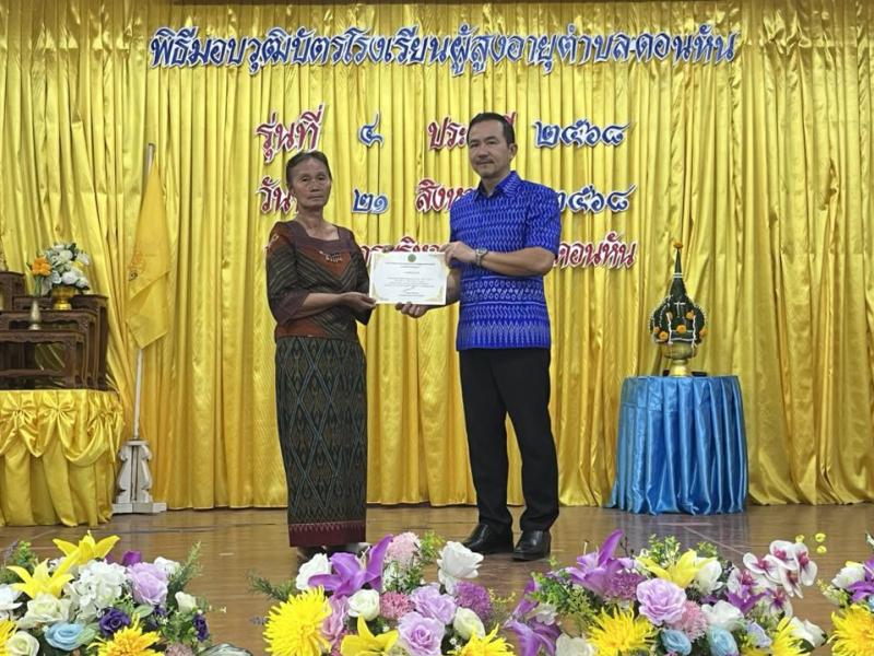 วันพฤหัสบดี ที่ 21 สิงหาคม 2568 กิจกรรมปัจฉิมนิเทศและมอบวุฒิบัตรนักเรียนโรงเรียนผู้สูงอายุ รุ่นที่ 4 ประจำปี พ.ศ.2568 ณ องค์การบริหารส่วนตำบลดอนหัน