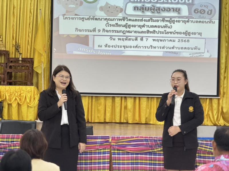 วันพฤหัสบดี ที่ 7 สิงหาคม 2568 นายธนากร รังสิมานพ นายก อบต.ดอนหันกล่าวเปิดโครงการโครงการศูนย์พัฒนาคุณภาพชีวิตและส่งเสริมอาชีพผู้สูงอายุตำบลดอนหัน (โรงเรียนผู้สูงอายุ) กิจกรรมกฎหมายและสิทธิประโยชน์ของผู้สูงอายุ ณ องค์การบริหารส่วนตำบลดอนหัน
